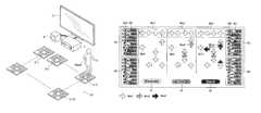 The number of mats may be determined arbitrarily in the exercise support system. Specifically, the number of mats is not limited to the thirty-two mats (e.g., mats for thirty-two players) illustrated inFIG. 1 and can be determined arbitrarily. The arrangement of amat group20 of themats2 is not limited to a matrix and thus may be set arbitrarily so long as the players moving on the mats are able to see adisplay device3. A monitor of thedisplay device3 is preferably a large screen in which the display contents can be clearly seen by a relatively large number of players.