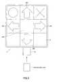 Referring toFIG. 3, themat2 of the present embodiment includes afoot switch21 and asignal processing unit22. As illustrated inFIG. 3, thefoot switch21 includesdetection areas22U,22R,22L, and22D for respectively detecting stepping motions in the forward, left, right, and backward directions. The symbols “◯” and “x” depict an appropriate arrangement direction of thefoot switch21 for guiding the player or a system operator. For example, by arranging thefoot switch21 so that the “◯” and “x” point toward the display monitor, proper detection results of the stepping motion directions are outputted. In the exercise support system of the present embodiment, the player is located in anarea22H that is a home position when not performing a stepping motion. The player then performs stepping motions in any of the forward, left, right, and backward directions according to stepping motion instruction timings instructed by the display monitor. The upward, right, left, and downward directions that are the moving mark arrow directions displayed on the display monitor correspond to the forward, right, left, and backward directions on thefoot switch21. Specifically, when the stepping motion instruction instructed by the display monitor is the upward direction, the forward direction stepping motion on thefoot switch21 corresponds to that instruction. However, it is assumed that the player has no feeling of unease with such an association.