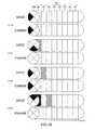 FIGS. 10 and 11 illustrate examples of display timings of bars displayed in thedisplay area201 when a player performs the stepping motions with respect to display patterns of different levels of difficulty.