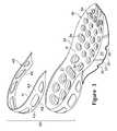 FIG. 11 is a perspective view of the sole component following removal from the mold.