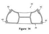 The edges of reinforcingelement40, as depicted inFIGS. 7A and 7B, exhibit a squared cross section. In order to facilitate closer contact between reinforcingelement40 andbladder30, some or all of the edges of reinforcingelement40 may be beveled, as depicted inFIG. 14. This may minimize stretch and potential thinning in areas whereupper barrier layer31contacts reinforcing element40 during the manufacturing process.