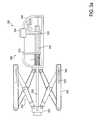 Whenbutton336 is depressed,pin338 disengages rackassembly334. Constant force device332 (e.g., a spring) is then allowed to decompress and expand, thereby applying a constant force against the rack assembly and thecentral rod324, and thusshuttle assembly325, proximally towardshandle306. As the distance betweenshuttle assembly325 and handle306 decreases, the scissor-like assemblies expand, pushing pad supports and pads (not shown) radially outward from the device. It should also be understood thatdevice300 ofFIGS. 3a-3bcan comprise an actuation mechanism remotely coupled to the device (e.g., via a flexible tube as shown inFIG. 1d) so as to allow for expansion of the device from a location remote from or a distance away from the patient.