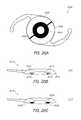 FIG. 28A is a top view andFIG. 28B is a cross-sectional view of an embodiment of anintraocular implant6700 with asupport member6702. Thesupport member6702 extends from themask6704 to theouter periphery6706 of theimplant body6708. Thesupport member6702 can include one ormore contact portions6710 that can removably couple to the mold during injection of theimplant body6708 around themask6704. In certain embodiments, theimplant body6708 is injected around both themask6704 and thesupport member6702. Thesupport member6702 can also include linkingmembers6712 that couple thecontact portions6710 and themask6704. The linkingmembers6712 have an anterior and/or posterior surface area that is minimized so that the linkingmember6712 substantially does not block light that passes through theimplant body6708 outside the outer periphery of themask6704.