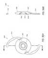 FIG. 36A is a top view andFIG. 36B is a cross-sectional view of an embodiment of anintraocular implant7500 similar to theintraocular implant7400 ofFIGS. 35A-B. However, themask7504 is configured to be near theanterior surface7518 of theimplant body7508 and follows the contours of theanterior surface7518 of theimplant body7508. The closer themask7504 is to theanterior surface7518 less light that pass through the transition zone7914 on the anterior surface at large incident angles can pass through theposterior surface7520 which can be observed as visible artifacts to a patient. For embodiments where the transition zone is on the posterior surface, the mask can be positioned to be near the posterior surface. Thesupport member7502 can also configured to be near theanterior surface7518 of theimplant body7508.