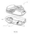 In theFIG. 74, the top non-disposable portion X also includesmain PCB13, avibration motor3210 and apumping actuation member54. The top, non-disposable portion X includes the AVS assembly or dispensingassembly120. InFIG. 74, amicrophone133 is shown. The top, non-disposable portion X also includes abattery15, which may be used to provide electrical power to electronics on the non-disposable portion and/or the disposable portion. In some embodiments, thisbattery15 is rechargeable. Recharging can be done by methods described below. The disposable portion Y includes the wetted components including a fluid line (not shown) and the pumping assembly. InFIG. 74, only the pumpingplunger54 can be seen. This embodiment of thedevice10 can also include many of the elements described above, including, but not limited to, a fluid impedance, a flexible membrane, a cannula housing and a sensor housing. Any pumping mechanism can be used.