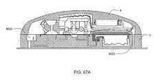 Referring now toFIGS. 81A-81C, a sequence is shown to illustrate the process of sandwiching thereservoir20 between the top X and base Y. As seen inFIG. 81A, the top X as well as thereservoir20 outside of the top X are shown. The reservoir includes aseptum6270. The top X includes areservoir relief2640. Next, as shown inFIG. 81B, the top is prepared to sandwich with the base Y. Referring now toFIG. 81C, thereservoir20 is placed, septum side down, inside the base Y. The septum will connect with a cannulated septum needle (not shown) inside the base Y and connect the reservoir to the fluid line (not shown). In alternate embodiments, the reservoir may include a cannulated needle rather than a septum and the fluid path may include a reservoir interface with a septum rather than a cannulated needle.