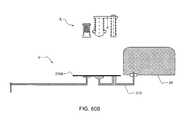 Referring now toFIGS. 115 and 116. One embodiment of an apparatus is shown for recharging thebattery7100. InFIG. 15, the top, non-disposable portion of afluid delivery device2620 is shown disconnected from the base, disposable portion of a fluid delivery device. Thebattery recharger7100 is used to recharge the battery (not shown) in the top2620. InFIG. 116, the top2620 is shown on thebattery recharger7100. Thelatches6530 are shown closed, connecting the top2620 to thebattery recharger7100. Thus, thelatch6530 used to connect atop portion2620 to a base portion (not shown) is also used to connect the top2620 to thebattery recharger7100. Docking may establish a direct power connection, or power may be transferred by way of inductive coupling. Also, in some embodiments of the system, the patient employs multiplenon-disposable portions2620 in rotation; i.e., recharging onenon-disposable portion2620, while using a second non-disposable portion (not shown).
