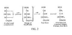 Another aspect of the present disclosure is that the carbohydrate structure is also believed to influence the kinetics of the rearrangement. Specifically, it is known when the C-2 hydroxyl of a crystalline N-substituted glycosylamine was unsubstituted, the compound was slowly transformed during storage to the rearrangement product. However, if the C-2 hydroxyl was substituted, then the rearrangement was substantially inhibited. Accordingly, one aspect of the present disclosure is that a carbohydrate of the present disclosure is unsubstituted at the hydroxyl adjacent to the ketone or aldehyde.