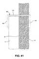 FIG. 39 shows a fragmented elevation view cross-section of a wall structure showing securement of the flanged studs to underlying and overlying structure.