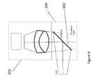 FIG. 175 is a chart that shows the effective relative achromatic acuity, compared to the acuity of the fovea, provided by a typical human eye within the eye's field of view when the movement of the eye is included. Within the +/−15 degree portion of the field of view that is viewed with the fovea by moving the eyes, the relative acuity is equal to that provided by the fovea. Beyond the portion of the field of view that is viewed with the fovea, the acuity decreases at the rate associated with eccentricity in the eye as shown inFIG. 173. This acuity chart corresponds to the sharpness distribution that needs to be provided by a head worn display with a wide field of view. As long as the displayed image is provided with a relative sharpness that is above the acuity distribution shown inFIG. 175, the human eye will perceive the displayed image to be uniformly sharp. This is because when an image is presented with a field of view that is wider than the portion of the field of view that can be comfortably viewed by the fovea, the acuity of the eye is substantially decreased. For example, based on the acuity chart inFIG. 175, an image can be presented with a central sharp zone that is +/−15 degree to a +/−20 degree in size and as long as the image sharpness decreases to no less than 20% of the sharpness of the sharp zone by approximately +/−25 degrees, the image will be perceived by the user as being uniformly sharp.FIG. 176 is a chart that shows the minimum design MTF vs angular field position needed to provide a uniformly sharp looking image in a wide field of view displayed image. In this figure the design MTF is given as a spatial modulation at 20% MTF relative to Nyquist, where Nyquist MTF is 100% and reduced MTF is less. The chart shows a uniform design MTF of 100% Nyquist across the central sharp zone (+/−15 degrees) and a rapidly decreasing design MTF in the peripheral zone (greater than 15 degrees). By providing a reduced design MTF in the outer portions of the angular field, the optics can be greatly simplified, thereby reducing cost and reducing the overall size of the optics.