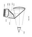However, the acuity of the eye that is experienced by the user has to take into account the rapid movements of the eye within the field of view. These rapid movements of the eye effectively expand the high acuity portion of the field of view seen by the user. In an augmented reality application, movement of the head by the user must also be taken into account. When the user perceives an object near the edge of the eye's field of view, the user first moves their eyes toward the object and then moves their head. These combined movements enable the user to view a wider field of view while also making it more comfortable to view an object at the edge of the field of view by reducing the angular movement of the eyes. Human's tend to only move their eyes a limited amount before they move their head.FIG. 174 shows a typical chart of eye movements and head movements given in radians vs time (A Doshi, M Trivedi; “Head and eye gaze dynamics in visual attention and Context Learning”, 2009 IEEE, 978-1-4244-3993-5/09, pp 77-84). As seen in the data given inFIG. 174, the user's head tends to move quickly to recenter the eye within the field of view so that the head and the eye have the same angle. Angular disparities between the eye and the head tend to be limited to less than approximately 0.25 radians (which is equal to approximately 15 degrees) except for very brief excursions. This is different from a head movement that occurs when a person reacts to a sound wherein the eyes and the head move together with minimal disparity. If the user wants to look at an object that is more than approximately 15 degrees from the direction the head is pointed, the user will first move their eyes and then move their head to reduce the angular disparity between the eyes and the head to less than 15 degrees to look at the object. This relationship between the movement of the eyes and the movement of the head is important to take into account when designing and operating a head worn display with a wide display field of view. Based on the acuity of the human eye and the movement of the eye relative to the movement of the head, sharp images with high resolution and high contrast are needed within the central +/−15 degree to +/−20 degree portion of the display field of view to provide the user with an image that is perceived as sharp and high contrast. This is the central region of the display field of view wherein the user will move their eyes to look at the image with the fovea. Outside of this region of the display field of view, the displayed image does not have to be as sharp because the user will not typically look directly at that region of the display field of view. Instead for example, to view an augmented reality object that is located 30 degrees from the center of the displayed field of view, the user will move their eyes approximately 15 degrees toward the object and then turn their head the remaining 15 degrees toward the object. If the augmented reality object is world locked (i.e. where the object is displayed in a constant position relative to real objects in the surrounding environment), as the user moves their head, the augmented reality object will move toward the center of the displayed field of view and as such it will move into the central sharp region of the display field of view.