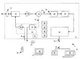 Adapter14 may output a processed signal to diplexer16. As depicted,device12 may be capable of performing several high-end functions. For example, in addition to performing some STB-like functions,device12 may also effectively function as a multimedia desktop computer that runs a variety of advanced services such as videoconferencing, home networking, Internet Protocol telephony, Video on Demand (VoD), high-speed Internet Television, personal video recording, and/or others.Diplexer16 may facilitate some of these services by distinguish between upstream and downstream communication flow. In some embodiments, different types of traffic may be carried in different frequency bands. For example, data traffic may be carried in one band while voice telephony traffic may be carried in another. Similarly, upstream traffic may be carried in a defined frequency range that is different than the defined frequency range of downstream traffic. As such,diplexer16 may be able to separate traffic types by reference to the frequency of the signals.