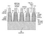 FIG. 9A illustrates a cross-sectional view of a recessed isolation material in an aspect of the present disclosure.