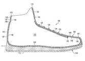 Knitted component130 may be formed from a single type of yarn that imparts common properties to each ofsock portion131 andtongue portion132. In order to vary the properties ofknitted component130, however, different yarns may be utilized in different areas ofknitted component130. That is,portions131 and132 or different areas ofportions131 and132 may be formed from different yarns to vary the properties between areas ofknitted component130. Moreover, one area ofknitted component130 may be formed from a first type of yarn or combination of yarns that imparts a first set of properties, and another area ofknitted component130 may be formed from a second type of yarn or combination of yarns that imparts a second set of properties. Properties may vary throughoutknitted component130, therefore, by selecting specific yarns for different areas ofknitted component130. Examples of properties that may be varied through choice of yarn include color, pattern, luster, stretch, recovery, loft, hand, moisture absorption, biodegradability, abrasion-resistance, durability, and thermal conductivity. It should also be noted that two or more yarns may be utilized in combination to take advantage of properties from both yarns, such as when yarns are plated or form different courses in the same area.