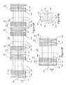 It is to be appreciated that the convertingapparatus300 described above can be configured to construct and utilize different shapes and sizes of discrete lengths ofbelt material310. For example, theknife roll308 can be configured to cut the continuous length ofbelt material308 into discrete lengths ofbelt material310, such as shown inFIGS. 4 and7B1. As shown in FIG.7B1, the discrete lengths ofbelt material310 are cut into an I-shape wherein notches of material and partial lengths ofinner elastics172 are removed. As such, notchedregions311 of the discrete length ofbelt material310 separate opposingpluralities173 ofinner elastics172. As shown in FIG.7B1, the discrete length ofbelt material310 is oriented such that theelastic strands170,172 and the direction of stretch are substantially parallel with the machine direction MD. FIG.7B2 shows a second orientation of the discrete length ofbelt material310 before being removed from thecarrier apparatus306. As shown in FIG.7B2, the discrete length ofbelt material310 is oriented to resemble a H-shape with respect to the machine direction MD such that theelastic strands170,172 and the direction of stretch are substantially parallel with the cross direction CD. With the orientation shown in FIG.7B2, each discrete length ofbelt material310 includes aleading end portion310aand a trailingend portion310b. It is to be appreciated that the belt material may be cut to define various types of shapes. For example, FIG.7B3 shows an embodiment wherein the belt material includes notchedregions198 to define leg openings. In another example, FIG.7B4 shows an asymmetric notchedregion199 configuration.