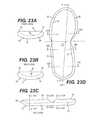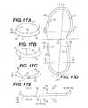 FIG. 14A is prior artFIG. 62 from the applicant's '350 U.S. patent showing the extra sole width required to accommodate the dynamic footprint andFIGS. 14B-14D are prior artFIG. 1A-1C from the applicant's '982 U.S. patent showing the footwear sole's capability to deform to flatten under the body weight of a wearer, including during 20 degrees of supination or pronation.FIG. 14E is the prior artFIG. 28cof the applicant's '819 U.S. patent showing theflexibility axis122.
