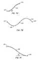 FIG. 7A is a side view ofsection130 inFIG. 6B,FIG. 7B is a top down view ofFIG. 6B andFIG. 7C is side view ofsection132 inFIG. 6B. The angle β ranges generally between 20 degrees to 160 degrees in some embodiments and generally between 45 degrees to 120 degrees in some other embodiments. The angle α is formed by a portion ofsection120, a portion ofsection130 and theend102. Alternatively, the angle α is formed by theend102 and tangents formed with a portion of thesections120,130. Another angle α is formed onend104 as discussed above but in the context ofend104, a portion of the lumenwall contacting end104 andsections122,132. The angle α ranges generally between 40 degrees to 170 degrees in some embodiments and generally between 70 degrees to 140 degrees in some other embodiments.