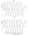 In addition, DC can be used to generate digital code by interleaving the AC throttle voltage with DC signals using any of the signal types described for DC powered trains where AC and DC are used together, such as those described inFIGS. 72, 73, 75, 83, 86, and 88. The main difference is that the starting track voltage, such as7310, inFIG. 73 will be the AC track voltage instead of DC and the first bit or start bit will be DC rather than AC. However, the basic methods of alternating AC signals with DC signals would remain the primary method of digital encoding. Also phase modulation could be used to ensure that when DC was applied, it had a voltage appropriate to maintain locomotive speed.