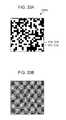 The characteristics of the first and second random patterns will now be described based on the results of two-dimensional Fourier transform.FIG. 35A is a graph showing the distribution of intensity of spatial frequency components determined by the two-dimensional Fourier transform of the first random pattern.FIG. 35B is a graph showing the distribution of intensity of spatial frequency components determined by the two-dimensional Fourier transform of the second random pattern. These graphs are shown with lower spatial frequencies (i.e., larger periods) near the centers of the graphs and higher spatial frequencies (i.e., smaller periods) awav from the centers of the graphs.