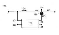 When an AC input voltage VACis applied to thefirst node111 and ac-coupled to the high-impedance control node113, a voltage swing at the high-impedance control node113 needs to be sufficiently large to permit the current IDCto flow from thefirst node111 to thesecond node112 due to a starting up problem caused by the threshold voltage of theswitching component110. Accordingly, theimpedance transformer120 having apositive input node121, anegative input node122, apositive output node123 and anegative output node124 is provided to amplify the AC input voltage VACwith a gain Avwhen a parasitic impedance from the high-impedance control node113 is loaded, so as to increase the voltage swing between the high-impedance control node113 and the control-reference node114.