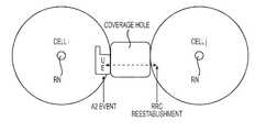 When the UE enters the coverage area of the cell j the UE is also configured to generate an RRC Connection Reestablishment Request that is sent to the RN of cell j. The RRC Connection Reestablishment Request is a message defined by the RRC protocol that requests reestablishment of a previous connection. Included in the RRC Connection Reestablishment Request is the identity of the cell to which the UE was previous connected (e.g., cell i). In this way the receiving RN knows that a coverage hole may exist between cell i and cell j.