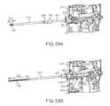 FIG. 57 shows one variation of a sheath bearing tube slidingly passing through a sheath bearing assembly and then attached to a slider base block assembly positioned within the handle assembly.