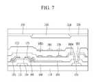 Referring toFIG. 7, the display device may have a structure in which a plurality of layers is laminated (or otherwise stacked) on a lower substrate110 (which may be a transparent insulation substrate) and an upper substrate210 (which may also be a transparent insulation substrate). An upper surface of theupper substrate210 may be utilized as a touch surface, which may be touched by a user of the display device. Thelower substrate110 and the layers formed thereon may be collectively referred to as a first (or lower) panel, and theupper substrate210 and the layers formed thereon may be collectively referred to as a second (or an upper) panel. For a liquid crystal display, a liquid crystal layer may be included between the lower panel and the upper panel.