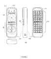 During use of the exemplary multi-sided controlling device presented herein, it may be desirable that only a single input surface (e.g., one of command function andnavigation surface202 oralphanumeric keyboard surface204 currently facing a user) be enabled, i.e., be active, for receipt of user input at any one point in time. In this manner, inadvertent issuance of appliance commands or data values due to a user's grasp on the other input surface of controllingdevice100, e.g., the surface presently facing away from the user, may be inhibited. In order to offer a transparent and user-friendly interface, the operational software of exemplary controllingdevice100 may implement some or all of the methods described below to determine which surface is to be considered as being currently active.