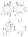 FIGS. 60A-60N illustrate an example method of loading and ejecting the exampleprosthetic capsular device5880 ofFIG. 58E.FIG. 60A shows thedevice5880 in acase6002, for example similar to thecase5702. Thecase6002 includes afirst part6010 and asecond part6011. Thefirst part6010 is spaced from thesecond part6011 by agap6012. Each of thefirst part6010 and thesecond part6011 comprises a plurality offrustoconical posts6014. Thedevice5880 is radially inward of theposts6014. In FIGS.60B and60C, forceps6004 (e.g., Cumming CrystaLens Forceps from Miltex, Inc. of Plainsboro, N.J.) are used to remove thedevice5880 from thecase6002. Thegap6012 allows one arm of theforceps6004 to reach under thedevice5880. InFIGS. 60D-60F, thedevice5880 is loaded into an injector6006 (e.g., Accuject 2.6 BL (back load) from Medicel AG of Wolfhalden, Switzerland). Theforceps6004 continue to hold thedevice5880 while thedevice5880 is loaded into a cavity of theinjector6006. Theinjector6008 includes asnap lock mechanism6008 to secure thedevice5880 after loading. InFIGS. 60D and 60E, themechanism6008 is open. InFIG. 60F, themechanism6008 is snapped closed.FIG. 60D also shows thedistal tip6016 of theinjector6006.