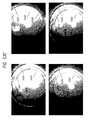 FIGS. 48A-48E are photographs of animal study results for a left eye of the second rabbit.FIG. 48A is after one week,FIG. 48B is after two weeks,FIG. 48C is after three weeks, andFIGS. 48D and 48E are after four weeks.FIGS. 48A-48E illustrate ananterior capsulorhexis4802, arefractive surface4804 of an IOL, andIOL haptics4808. The IOL haptics4808 are not visible in some figures, although the position of the haptics may be assumed based on other figures and/or the position of any visible portions of the IOL flared radially outwardly to form the start of the haptics. As inFIGS. 46A-46E, and in stark contrast to the right eye ofFIGS. 47A-47E, the left eye ofFIGS. 48A-48E evidencesignificant fibrosis4812 of the natural capsular bag, best seen inFIG. 48C.FIGS. 46A-46E also shown contraction of theanterior capsulorhexis4802. Due to the contraction and fibrosis, the effective diameter at which the left eye ofFIGS. 48A-48E can take in light is about 4.3 mm, which significantly impairs the vision in that eye except under the best lighting conditions.