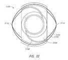 FIG. 29 illustrates an anterior plan view of another example of a prosthetic capsular device with an optional secondary IOL positioned inside the prosthetic capsular device;