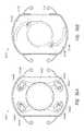 FIG. 44A, which is an annotated version ofFIG. 49B (upper left photograph), illustrates an anterior capsulorhexis4402 (shown by short dashes), a refractive surface4404 (shown by long dashes) of an IOL, an anterior opening4406 (shown by intermediate dashes) of a prosthetic capsular device containing the IOL, andIOL haptics4408.FIG. 44B, which is an annotated version ofFIG. 49A (upper right photograph), illustrates an anterior capsulorhexis4412 (shown by short dashes), a refractive surface4414 (shown by long dashes) of an IOL, an anterior opening4416 (shown by intermediate dashes) of a prosthetic capsular device containing the IOL, andIOL haptics4418. Photographs of eyes used for control (e.g., consisting essentially of an IOL) do not show an anterior opening of a prosthetic capsular device.