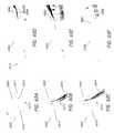 FIGS. 60G-60M show thedevice5880 being ejected from thedistal tip6016 of theinjector6006 by longitudinal advancement of aplunger6018, as indicated by thearrow6019. Thedevice5880 stretches longitudinally as thedevice5880 is advanced through theinjector6006, which tapers towards thedistal tip6016. InFIG. 60G, thedistance6020 between the ring portions of thedevice5880 is indicative of a first level of stretching. InFIG. 60H, thedistance6022 between the ring portions of thedevice5880 is indicative of a second level of stretching. Thedistance6022 is longer than the distance6020 (as drawn, about 73% longer). InFIG. 60I, just before thedevice5880 is about to start to exit thedistal tip6016 of theinjector6006, thedistance6024 between the ring portions of thedevice5880 is indicative of a third level of stretching. Thedistance6024 is longer than the distance6020 (as drawn, about 287% longer) and the distance6022 (as drawn, about 65% longer). The stretching of thedevice5880 is exponential as thedevice5880 advances through the taper of theinjector6006. Different amounts of stretching may be achieved by use of different materials, different injectors, etc.