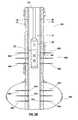 FIGS. 7-9 are representative elevational views of examples of the flow conveyed device with a retainer.