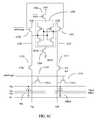 FIG. 28 illustrates an alternative arrangement of the use ofmemory cell250 as a configuration memory to configure connectivity in an FPGA, where aninverter88 and a p-channel metal-oxide-semiconductor (PMOS)transistor90 are used to restore the value of the signals passed betweenlines84 and86. This is because anNMOS switching transistor82 will only pass a maximum potential of about (Vgs−Vth), where Vgsis the potential difference between the gate and the source terminals, and Vthis the threshold voltage of the NMOS transistor, respectively.