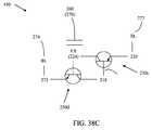 FIGS. 38B and 38C show two equivalent schematic representation ofmemory cell450. As shown inFIG. 38B, inherent inmemory cell450 are back-to-back p-n diode230a, formed bysource line region220 andregion218, andSchottky diode230b, formed by floatingbody224 andconductive material273. Another equivalent circuit representation is shown inFIG. 38C, showing the interconnected p-n-pbipolar device230c(formed bysource line region220,region218, and floating body224) and n-p-mbipolar device230d(formed byregion218, floatingbody224, and theconductive material273. The state of thememory cell450 is stored in the floatingregion224.