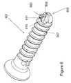 In some embodiments, insert103 has a geometry suitable for engaging components of the screw such asrod115 and/orthread111. Optionally, insert103 conforms with the profile ofthread111, such that it does not extend externally to the thread. Optionally, insert103 includes extensions that are sized and/or shaped to cover cutting edges on the distal end ofthread111, and/or includes extensions that are sized and/or shaped to fit within some or all the rest of the teeth ofthread111.