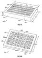 Referring now toFIG. 31, another embodiment of acapsule1400 is shown. This capsule is a minimal covering of the back and sides of the nanochannel device, such that the “reservoir” for a contained drug is limited to the volume of the macrochannels on the back of the chip (e.g., the nanochannel delivery device), which is about 4.5 mm3for the embodiment shown inFIG. 8K. This embodiment can be made particularly small, for example 2 mm×2 mm×0.5 mm, and is, therefore, especially suited for implantation with very high potency drugs into sensitive locations, e.g., glaucoma medication into the inner portion of the eye.