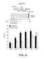 FIG. 15 shows experimental data for multiple SNPs placed in the TALEN DNA-binding site to stabilize HDR alleles in the EIF4GI gene. Panel a) shows a portion of wild type EIF4GI Wt-NL (SEQ ID NO:23) and a pair of TALENs (SEQ ID NOS: 24 and 25) designed to cut the wild type EIF4GI to stimulate homologous recombination. Also aligned to the Wt sequence is the core sequence (SEQ ID NO:26) of the donor oligo, DF-HDR, used to introduce three SNPs (underlined oversized letters) into the genome. The third SNP creates a novel EagI restriction site that was used for RFLP analysis. Pig fibroblasts were transfected with EIF4GI14.1 TALEN mRNA (2 μg) and DF-HDR (2 μM) and then cultured at 30° C. for 3 days prior to analysis and colony propagation. Panel b) shows RFLP analysis on population three days post transfection. Expected product sizes of 344, 177 and 167 bp are indicated by filled triangles. Panel c) shows RFLP assay on isolated cellular clones.Day 3 cells were used to derive monoclonal colonies through dilution cloning. An example of colonies with heterozygous (open triangles) or homozygous (filled triangles) HDR alleles are indicated.