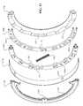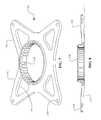 Referring to now specifically toFIGS. 55 and 56, the statorinterfacial member504 can include a disk shaped body having an inner bore. In one embodiment, the disc shaped body has a number ofguide slots520 arranged angularly about the inner bore so that each of theguide slots520 extends radially from the inner bore to an outer periphery of the disc shaped body. In some embodiments, theguide slots520 have a conformal profile configured to couple to thelegs240 of theplanet assembly108. The statorinterfacial member504 can include a number ofinterlock tabs522 configured to mate with theinterlock cavities514 andtabs515 of thestator support member502. In one embodiment, interlocktabs522 can be arranged in groups of fourinterlock tabs522 located at eachguide slot520. For example, each of theguide slots520 can be flanked on each side by at least twointerlock tabs522. In some embodiments, at least oneinterlock tab522 is arranged on either side of theguide slot520. The statorinterfacial member504 can be provided with a number ofleg clearance slots524. Theleg clearance slots524 are generally formed on the inner circumference of the disk shaped body and theleg clearance slots524 are substantially aligned angularly with theguide slots520. In some embodiments, the statorinterfacial member504 can include a number of statorsupport member extensions526 that are configured to engage thestator support member502. The statorsupport member extensions526 are preferably substantially aligned with, and extend from, theguide slots520.