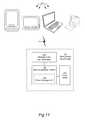 FIG. 8 illustrates the schematic layout of thefront surface15fof the main printedcircuit board15.FIG. 9 illustrates the schematic layout of the readsurface15, of the main printedcircuit board15. Component D1,FIG. 8, is a BlueCore CSR8670 WLCSP System on a Chip (SoC) integrated circuit device for Bluetooth 4.0. The device is available from Cambridge Silicon Radio Ltd, Churchill House, Cambridge Business Park, Cowley Road, Cambridge, CB4 0WZ, UK. Component D1 features Bluetooth 4.0 software, a radio with an integrated balun, an 80 MHz RISC MCU (application processor) and an 80 MIPS DSP (digital signal processor), internal flash memory, a stereo audio codec, noise reduction, audio interfaces, serial interfaces, integrated switch-mode regulators, linear regulators and battery charger, LED controllers, etc.