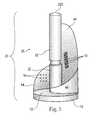 Referring toFIGS. 3A-3E, in another embodiment, the pump (28) may be juxtaposed with, and, in a degenerate case, disposed at, the closed end (22C) of the refill (20). Such a pump (28) may comprise a diaphragm which axially compresses the head space in response to axial force applied by the user coincident the longitudinal axis and applied towards the base (12).