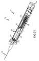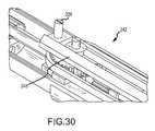 FIG. 29 is a bottom isometric view of the handle ofFIG. 17, with a bottom portion of the housing omitted, showing a second mechanism for imparting a relative linear movement to the second (substantially “straight”) tubular component.