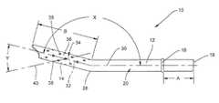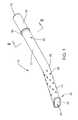 Also, preferably, the apertures are spaced circumferentially and longitudinally (with respect to longitudinal axis32) such that they are substantially evenly spaced over thedistal portion14. More preferably, theapertures38 extend longitudinally in a helical fashion extending alongdistal portion14 about longitudinal axis (seeFIGS. 1 and 3). The helix ofapertures38 extends along an imaginary helical line designated aspart number43 inFIG. 3. The angle betweenline43 andlongitudinal axis32 is denoted by the letter Y inFIG. 3. Y is preferably between about 20° and about 35°, more preferably between about 25° and about 30°, and most preferably about 27.5°.