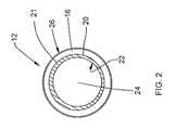 It is preferable that eachaperture38 have the same size as the other apertures, although that aspect is not critical. Theapertures38 are preferably generally cylindrical in shape, that is, having a circular perimeter (seeFIG. 4). It is more preferable that eachaperture38 include acylindrical portion44 which extends radially outwardly from the interior40, and a beveled or chamferedportion46 which extends from theouter surface36 of thedistal portion14 inwardly radially. It is preferred that the chamferedportion46 of each hole is rounded to provide a smooth surface and interface with thecylindrical portion44. It is also preferred that the size of the chamfered portion in the direction of thelongitudinal axis32 is between 15% and 25%, and more preferably 20% of the diametrical distance of theaperture38. The total cross-sectional area of all of the apertures is preferably in the range of about 40% to about 70% of the cross-sectional area of thedistal opening35 more preferably in the range of about 50% to about 60%, and most preferably about 55%.