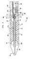 Device100 may further include a lockingrod180 which extends along the length ofproximal sheath160 in a position offset from the central axis thereof. Acompression spring182 may be assembled around the distal end ofrod180 and constrained between anend member185 of aspring retainer184 mounted to thesheath end wall166 and astop ring186 fixedly mounted to the locking rod.Spring182 may bias lockingrod180 distally so that the distal end thereof projects through anaperture188 in thesheath end wall166, and into one of a series ofrecesses189 in theproximal retainer142. The engagement of lockingrod180 in one ofrecesses189 fixes the rotational position ofdistal sheath162 relative to theproximal sheath160. Preferably,retainer142 includes an appropriate number ofrecesses189 along its outer periphery to lock thedistal sheath162 at any number of desired rotational angles relative to theproximal sheath160. The size ofspring182 is selected so that lockingrod180 may be retracted by an amount sufficient to move the distal end of the rod out from arecess189, thereby freeing thedistal sheath162 to rotate relative toproximal sheath160.
