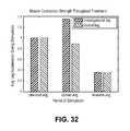 FIG. 31 shows empirical data from a human volunteer from the first study. The ordinate axis shows the maximum leg-extension force produced (as measured at the ankle by a dynamometer) by stimulation of the quadriceps muscle, normalized by baseline measurements for each leg. The electrical current settings on the NMES device were held constant throughout the measurement period. Time is shown on the abscissa. The measurements at time t=0-6 min were taken as baseline readings. At time t=6 min (solid vertical line), a waterproof bag containing ice cubes was used to cool superficial tissues on the experimental leg (upper data trace) in the location between the stimulation electrodes, while a room temperature bag was placed on the control leg (lower data trace). Both ice and room temperature bags were removed at time t=29 min (dotted vertical line). As shown, the improved efficiency of electrical current transfer to the quadriceps muscles (as evidenced by force of leg extension) is still evident more than 20 min following removal of the thermal stimulus. In addition to showing increased muscle stimulation (and increased contraction)FIG. 17 supports the functionality of cooling applied to superficial tissues intermittently during NMES or only prior to NMES.