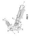 To allow for rotating the sections to change handedness, thehandle266 includes twoswitches291 and292 for locking/unlocking both handle portions. Switch291 locks and unlocks therotatable portion266afrom swiveling at thepivot338 with anglingportion266bengaging and disengaging a first mating structure (not pictured). Switch292 locks and unlocks the anglingportion266bof thehandle266 from thestem320 by engaging and disengaging a second mating structure (not pictured). Potential mating structures include a tooth, pin, clamp, detent system, strap, or any other known structure for mechanically locking and inhibiting movement between two members.