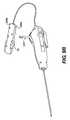FIGS. 6A and 6B illustrate handle263 defined at least in part by aflexible shaft60 that is articulated to controlcatheter22. In one aspect, bendingshaft60 up-down or left-right can control a degree of freedom. The distal end62 ofshaft60 can mate withcables61. Where two degrees of freedom are controlled via movement ofshaft60, four cables can mate withshaft60 and extend along a path proximate to the outer surface of the shaft. Bending of the shaft can pullcables61 by increasing the length of one side of the shaft. As the length ofshaft60 increases with bending, the cable adjacent to the lengthened side is pulled. While four cables and two degrees of freedom are illustrated inFIG. 6A, fewer cables and/or degrees of freedom could be provided.
