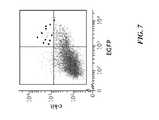 FIG. 7 shows a scatter plot indicating c-kit-positive, EGFP-positive human lung stem cells (big black dots) isolated after lung regeneration after the serial transplantation assay.